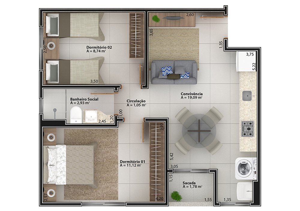 • 02 Dormitórios